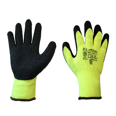 High visibility 10 gauge thermal work gloves. Polyester and cotton based interwoven with fluffy acrylic liner.
